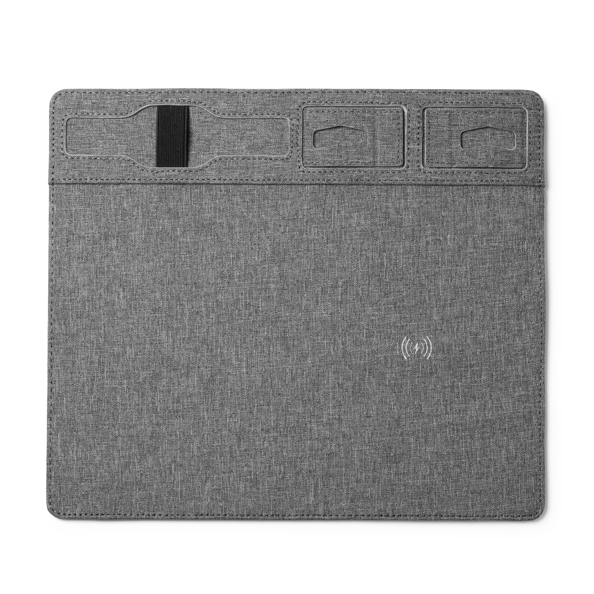 Alfombrilla para escritorio elaborada en RPET con cargador inalámbrico (10W) para dispositivos.